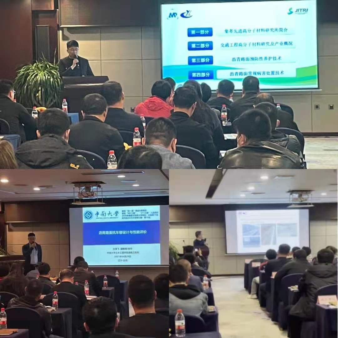 研討會采用了專家講座、會場討論及產品展示相結合的方式進行,分別邀請了南京興佑交通科技有限公司董事長魏唐中、中南大學副教授杜銀飛、深圳大學研究員馬聰作專題講座!講座圍繞瀝青路面預防性養護與病害處置技術、瀝青路面抗車轍設計與性能評價、東北地區鹽蝕混凝土部件的修復關鍵材料與技術進行展開。