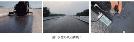 水性環氧瀝青是由高分子水性環氧樹脂改性瀝青、水性固化劑及其它溶劑組成,通過高速剪切分散機生產的一種水溶性的防水粘結材料,屬于水泥混凝土橋面專用防水粘結材料。該產品為黑色或褐色液體,撒布量一般在0.7~0.9kg/m2,固化成膜后附著力強、高溫性能好、不粘輪、防水性能優異。