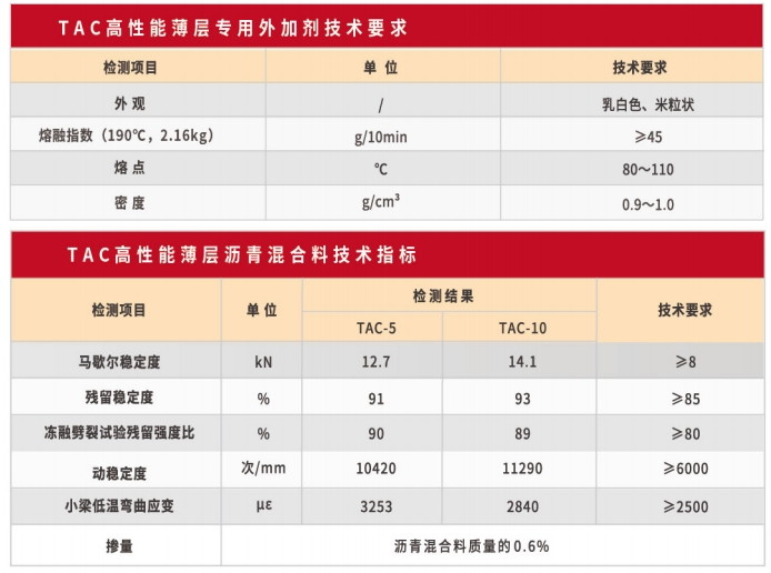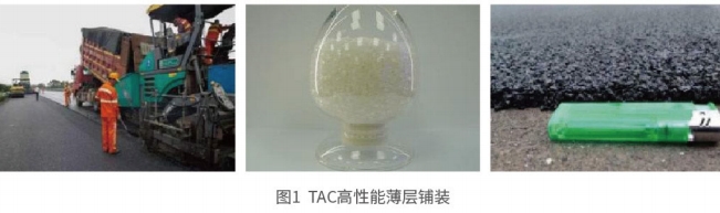 1、技術簡介 TAC 型薄層鋪裝外加劑采用高強耐久的高分子材料,針對抗滑性能衰減、 水損害以及反射裂縫和疲勞裂縫,是一款兼具溫拌效果的薄層鋪裝專用外加 劑,在拌和過程中可迅速分散在瀝青混合料中形成三維交聯網絡結構,兼具高溫性能與低溫性能,并可大幅提高超薄瀝青混合料的強度和壽命。